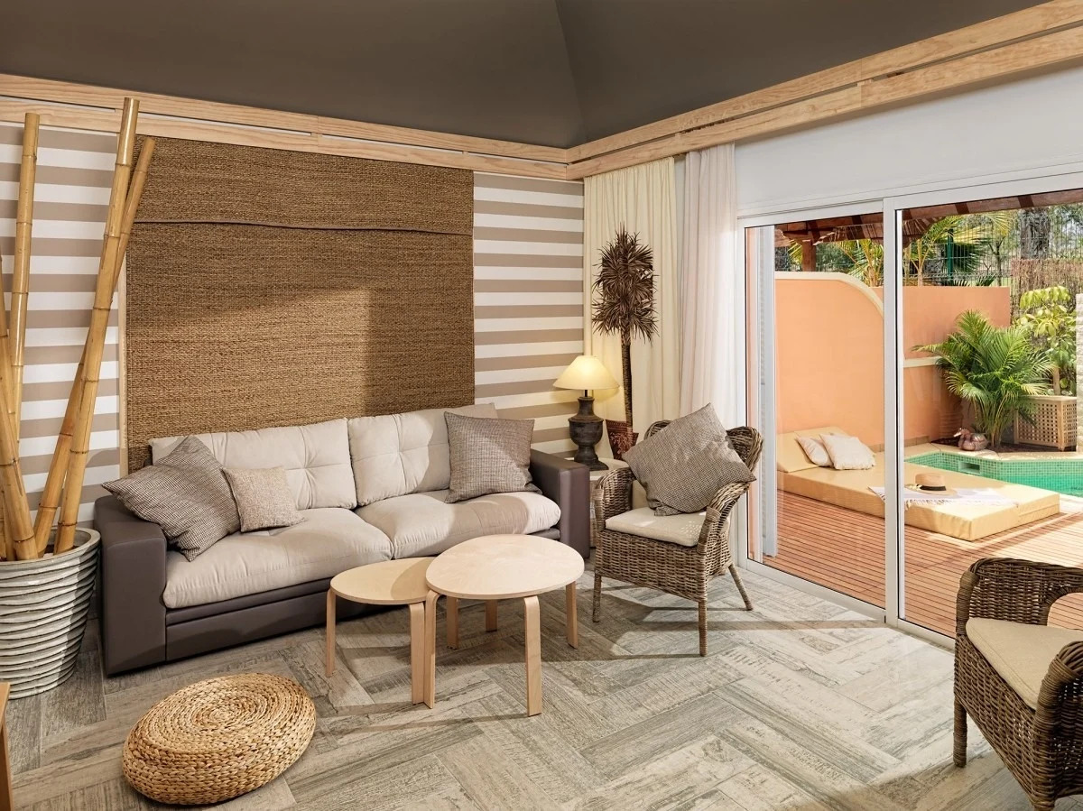 Villas with 60 square meters of interior plus a 12-meter terrace make the difference so that the whole family has its own space. The villa consists of a bedroom and a living-dining room with television and a terrace with furniture and a private pool.